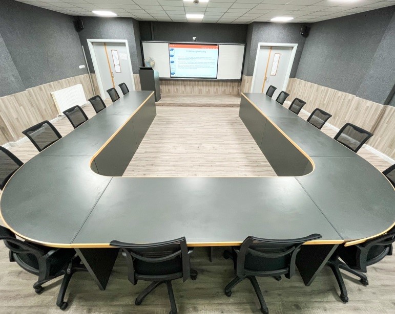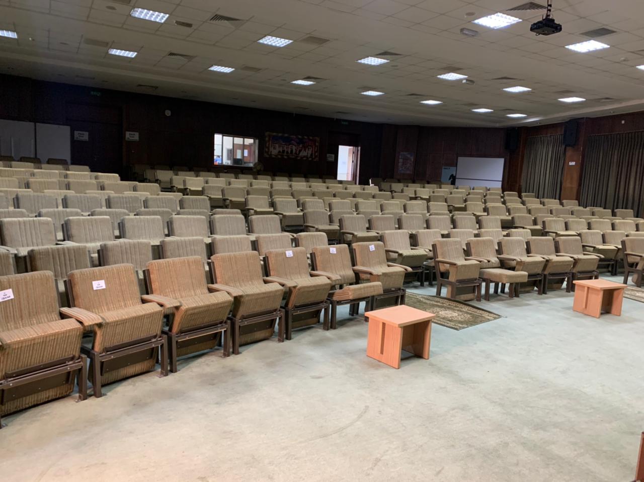وكما يضم المبنى مدرج يتسع لما يقارب 400 طالب اضافة الى وجود كافيتريا للطلاب تقدم المأكولات والمشروبات الباردة والساخنة.