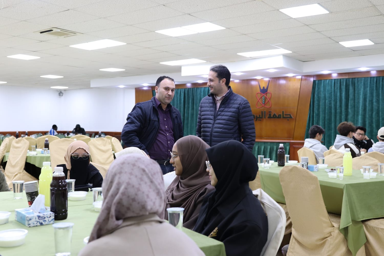 The Social Committee in the Department of Accounting at the Faculty of Business at Yarmouk University organized a communal iftar for international students from various nationalities. The event was held under the patronage of Professor Yahia Melhem, Dean of the Faculty of Business, and in coordination with Dr. Ma’moun Al-Shamali, Assistant Dean of the Faculty of Sharia. The gathering took place on Thursday, March 5, 2026, at Al-Hussein Hall.