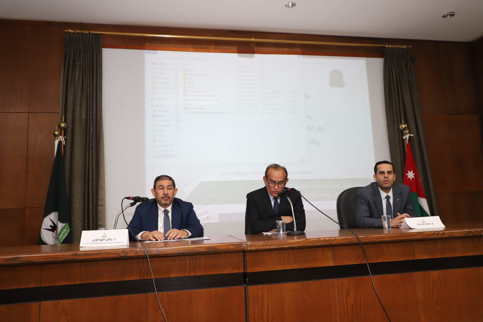 The seminar was delivered by Dr. Riyad Al-Hindawi, Director of the Banking Studies Institute and the Jordanian FinTech Academy, in the presence of the University President, the Dean of the Faculty Professor Yahya Bani Melhem, along with a number of faculty members and students.